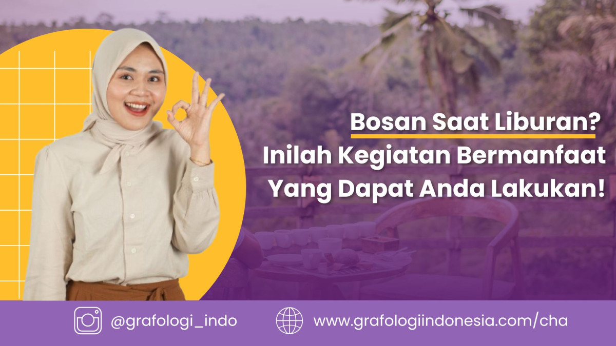 Mengikuti kelas online dapat mempertahankan produktivitas Anda termasuk kelas grafologi. Grafologi sendiri merupakan ilmu mengetahui karakter seseorang dengan menganalisis tulisan tangan. Ilmu ini dapat dipelajari oleh berbagai kalangan dari masyarakat umum, orang tua, pelajar yang ingin menambah skill, hingga orang-orang dengan profesi yang membutuhkan kemampuan mengenal orang lain seperti HRD, psikolog, dan mahasiswa psikologi. LKP Grafologi Indonesia menjadi lembaga yang menyediakan kelas grafologi berstandar internasional dan bekerjasama dengan KAROHS International School Handwriting Analysis USA. Anda dapat mengikuti berbagai jenis kelas yang disediakan. Seperti salah satunya adalah kelas Comprehensive Course yang dapat memberikan Anda gelar CHA (Certified Handwriting Analyst) setelah menyelesaikan kelas tersebut. Selain itu Anda juga mendapatkan sertifikasi berstandar internasional.