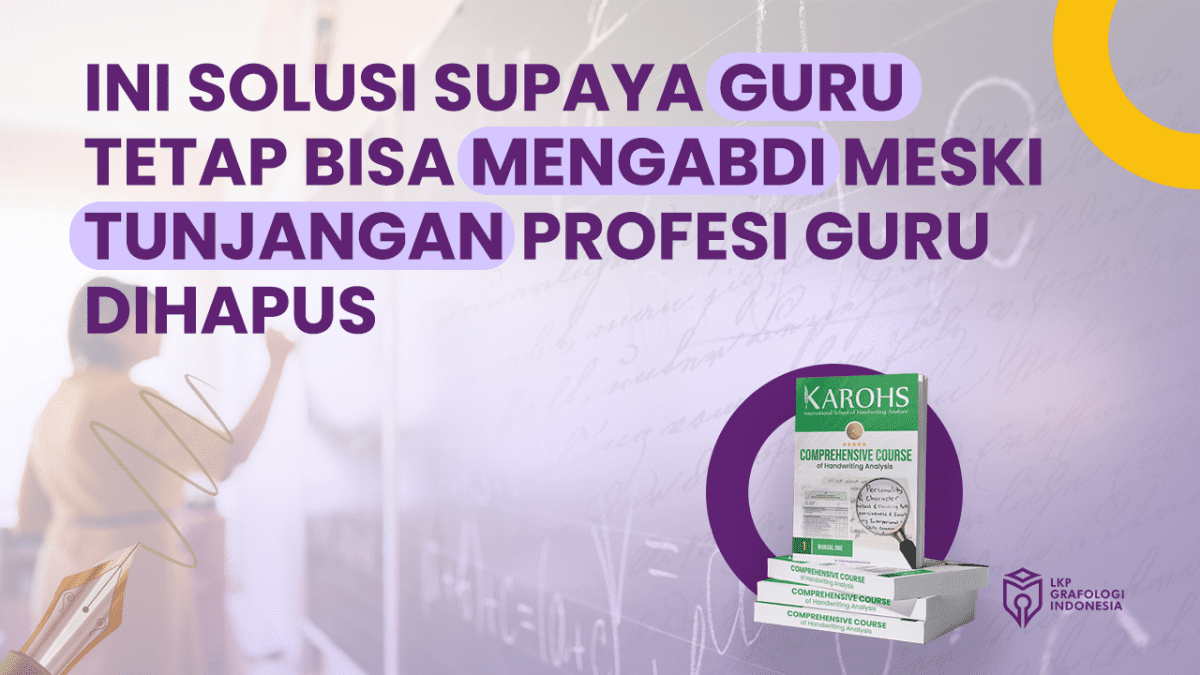 Jadi bagaimana menurut sobat Grafo? Bagaimana jika kita ubah kekecewaan terhadap penghapusan Tunjangan profesi Guru menjadi motivasi untuk hidup lebih baik dengan memanfaatkan Grafologi dalam menciptakan sumber pendapatan baru yang dapat mendukung kesejahteraan hidup sebagai seorang Guru sekaligus Grafolog Profesional.