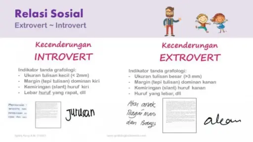 Ada cukup banyak tanda introvert / extrovert untuk melihat indikasi introvert dan extrovert dari tulisan tangan.
