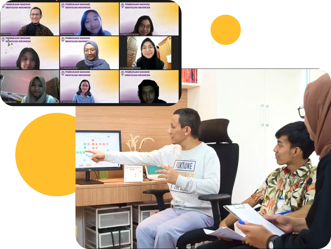 Anda juga memiliki kesempatan untuk menambah ilmu dan pengalaman untuk menjadi content creator yang mampu menghasilkan konten yang berkualitas melalui kelas pelatihan atau orientasi di awal periode magang. + Materi tambahan yang tidak kalah penting seperti grafologi, membuat kursus online, psikologi bisnis, dll