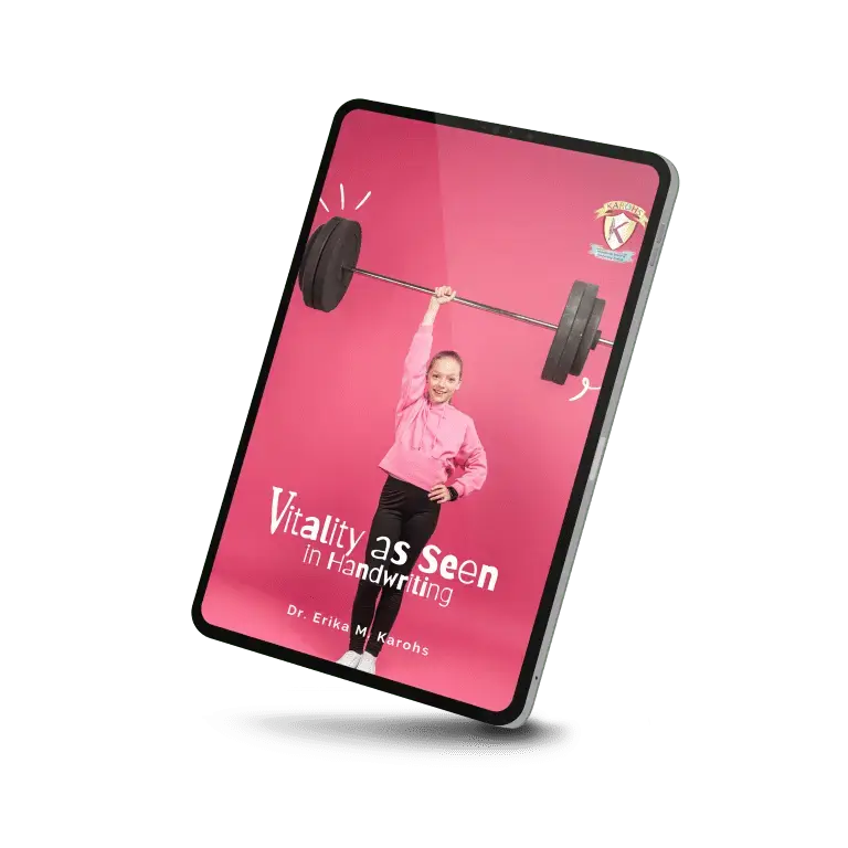 Vitality As Seen In Handwriting merupakan sebuah e-book yang ditulis oleh Dr.Erika M.Karohs. E-book ini membicarakan tentang variasi dalam tulisan tangan serta arti dari tulisan tangan tersebut, penyebab sebuah variasi tulisan tangan dihasilkan dari kebiasaan, penyebab saat menulis serta upaya pemalsuan tulisan orang lain. E-book ini juga menjelaskan variasi dalam pemalsuan tulisan tangan dan pemeriksaan pada tulisan tangan apakah tulisan itu authentic atau asli.