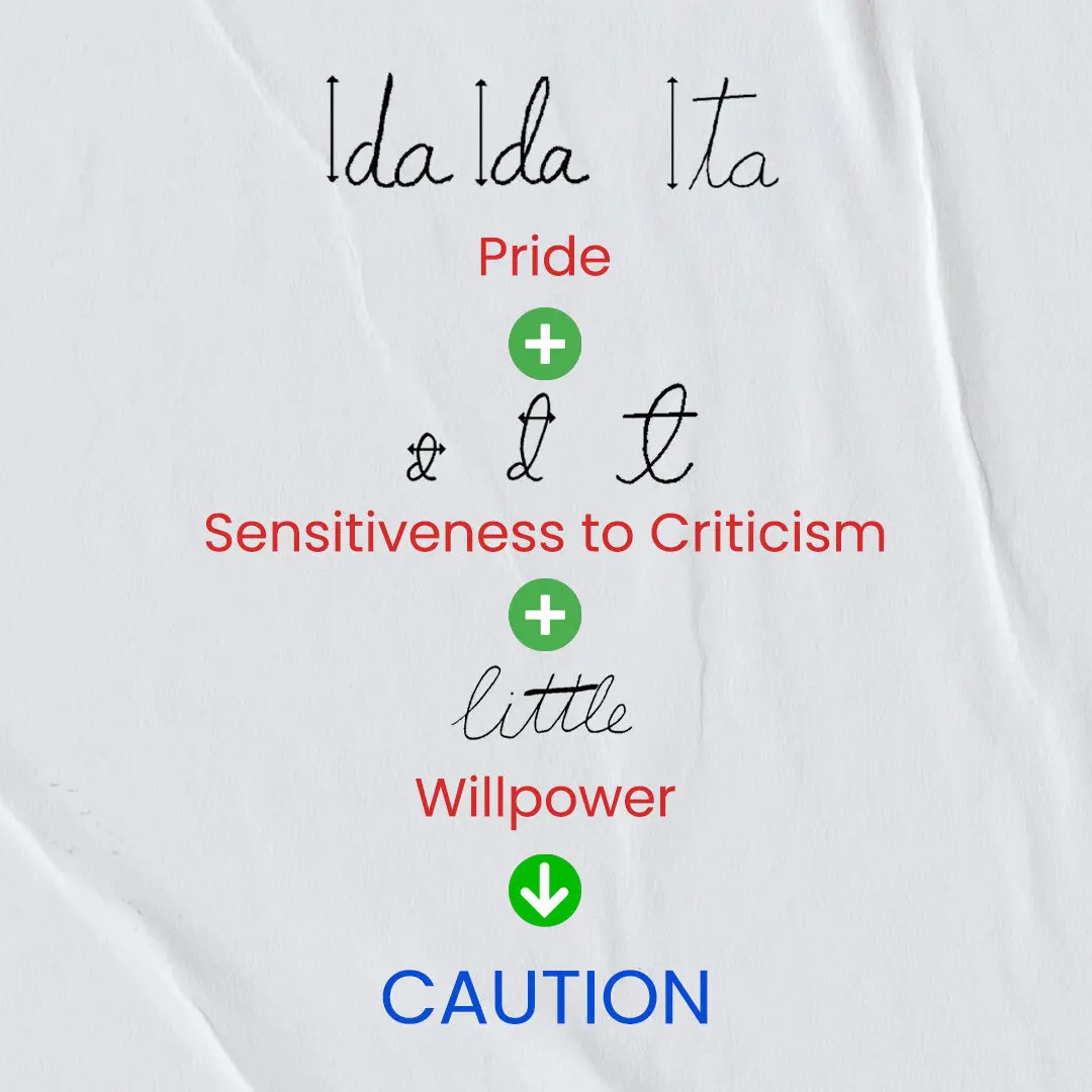 Pride + Sensitiveness to Criticism + Willpower → Caution (keraguan karena takut disalahkan)
