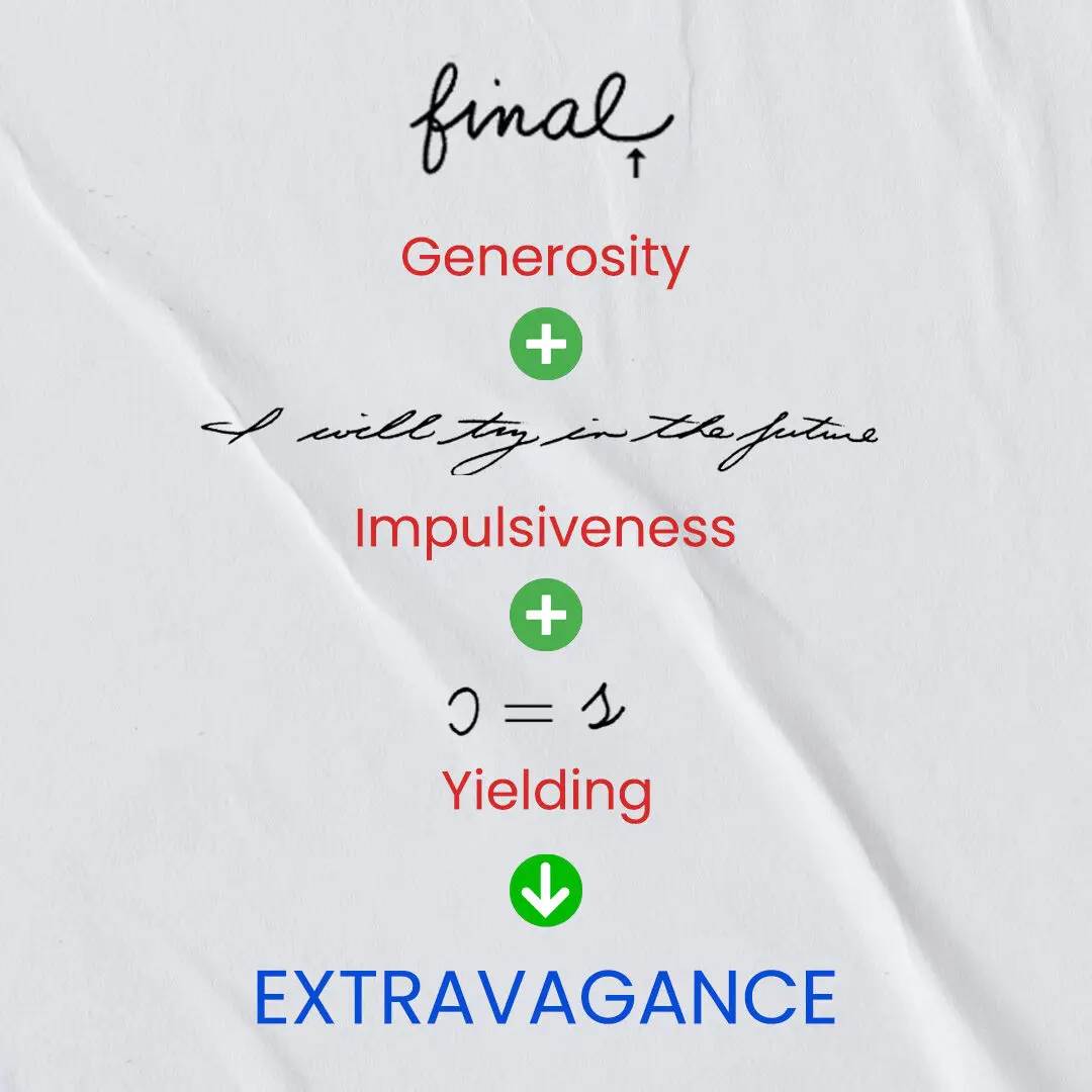 Generosity + Impulsiveness + Yielding → Extravagance (kecenderungan berlebihan dan boros)