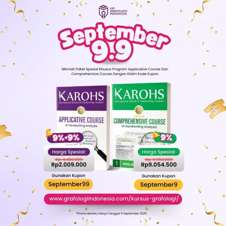 Promo hanya berlaku untuk transaksi yang dilakukan melalui website LKP Grafologi Indonesia pada tanggal promo. Pembayaran dapat dilakukan menggunakan metode transfer bank atau pembayaran digital yang tersedia. - Ketentuan Kursus